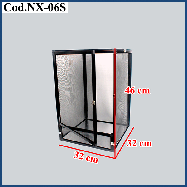 Terrario in rete con struttura realizzata da profili in alluminio color nero. Questa struttura, grazie alle sue griglie in rete, risulta perfetta per tutti gli animali che necessitano di una elevata circolazione d’aria come per esempio camaleonti.