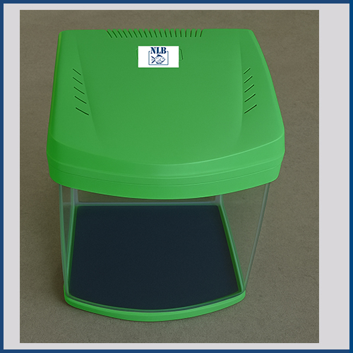 Acquario da 18 litri, è composto da una solida struttura in vetro con fondo blu, fornito di coperchio con lampada a led, pompa per acquario, tubi da inserire all'interno dell'acquario.