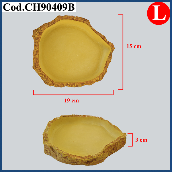 DIMENSIONI: 19 x 15 x 3 cm Ciotola in resina impermeabile, può contenere sia cibo che liquidi, adatta per ogni tipo di terrario.